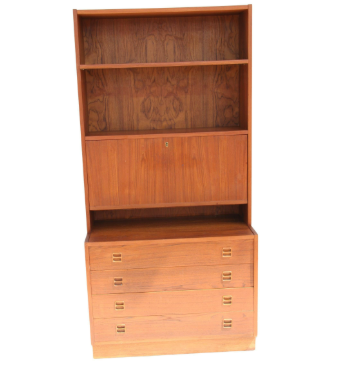 Poul Hundevard Danish Modern Teak 4 Drawer Drop Front Secretary w/ Bookshelf