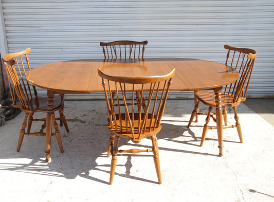 1980s Classic Ethan Allen Maple Colonial Style with 2 Leaf Extensions + 4 Chairs
