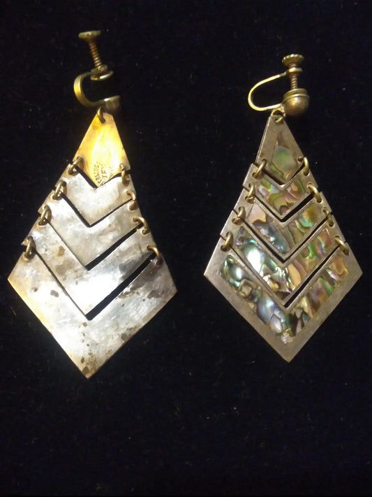 Pair of Mexican Silver TFV Pyramid Earrings with Abalone Accents
