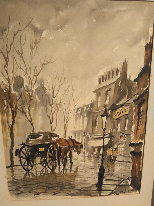 Original Phillip Colbert Horse and Buggy Street Scene Watercolor