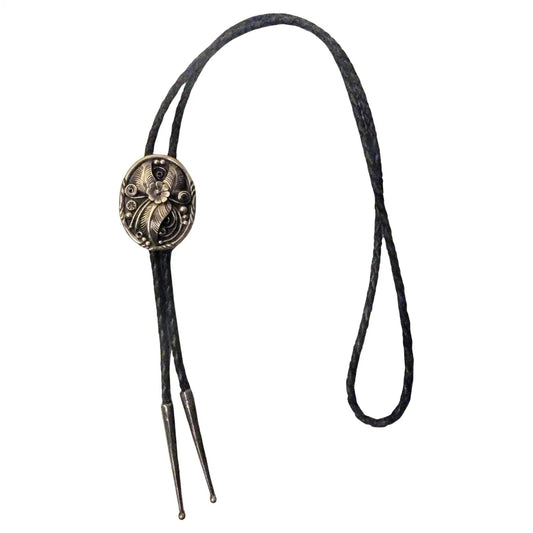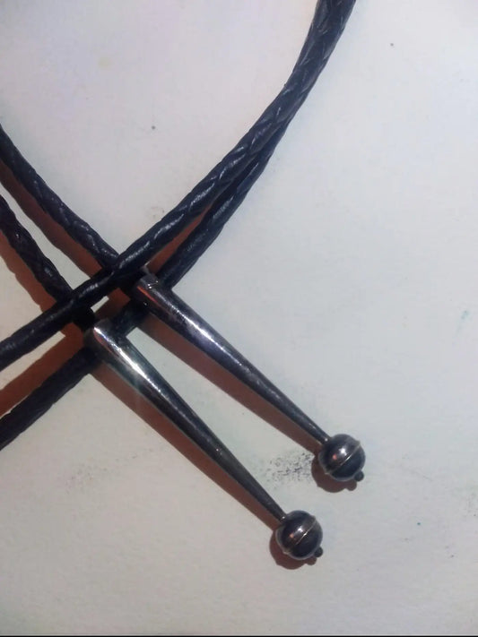 38" Leather and Sterling Silver Native American Bolo Tie w/ Applied Wire Medalli