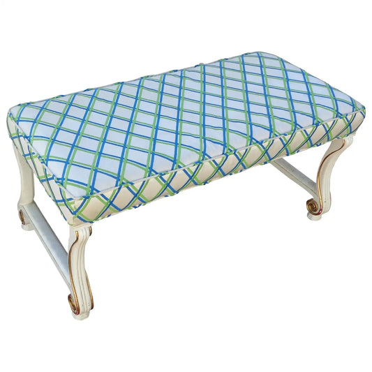 Vintage Faux Bamboo Bench Painted in A Floral Motif