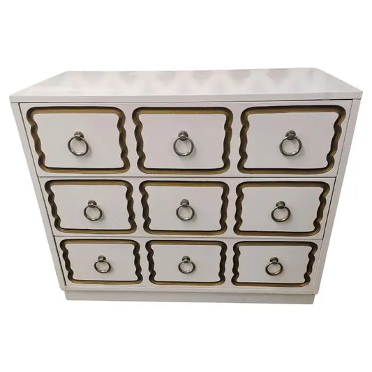 White Lacquered Dorothy Draper "Espana" Style 3 Drawer Chest