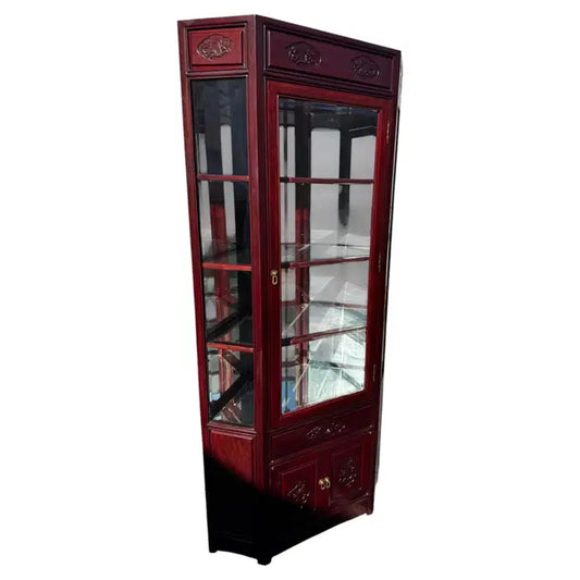 Lighted Chinese Rosewood Hexagon 4 Shelf Curio with 2 Door Cabinet
