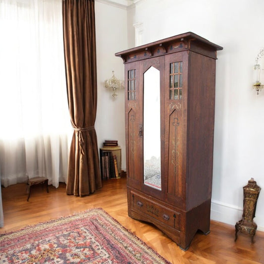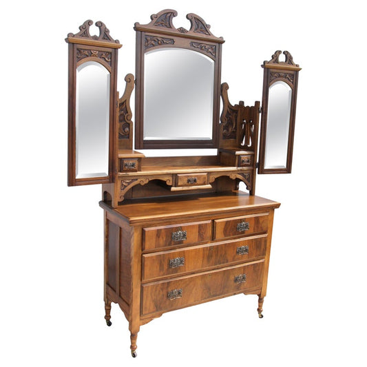 Antique Victorian Walnut Mirrored Vanity Dresser
