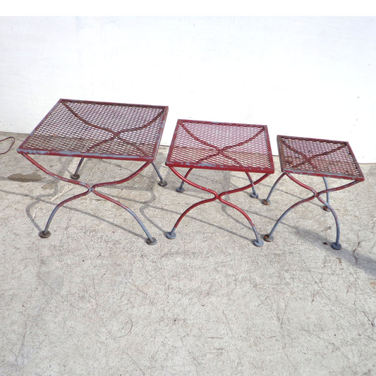 Set of Three Russell Woodard Metal Outdoor Nesting Side Table (MS10190)