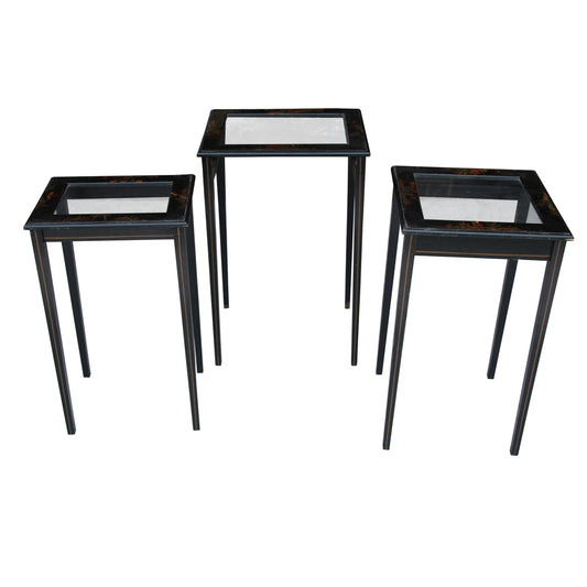 Vintage Set 3 Chinoiserie Japanned Nesting Tables