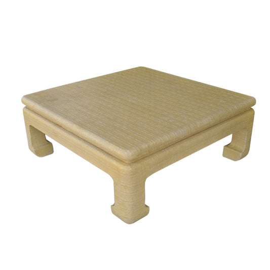 Mid Century Karl Springer 41″ square Ming Style Lacquered Grass Cloth Coffee Table