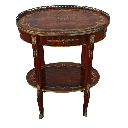 Antique French 19th Century Side Table with Gallery Edge and Marquetry Inlays