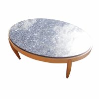 40″ x 24″ Rectangular Wood And Marble Pedestal Coffee Table