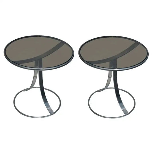 (2) Modern Italian Stainless Steel Side End Tables