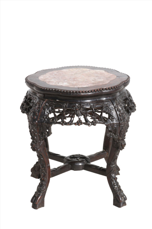 Chinese Hardwood Pot Stand with Marble Inset Top