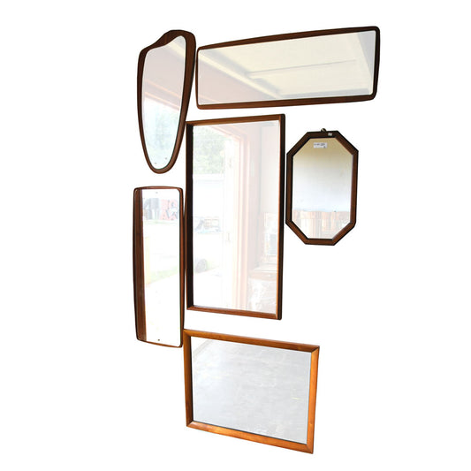 Rare French Brevete LB Wood Brass Trifold Wall Vanity Mirror
