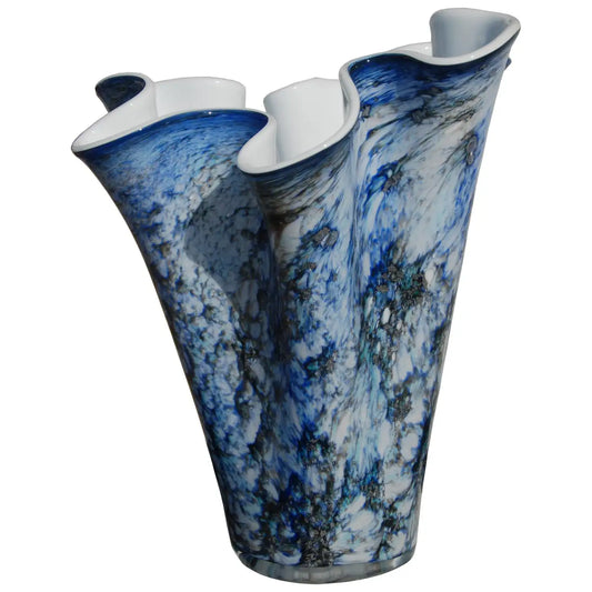 Hand Blown Fazzoletto Murano Style Folded Blue Vase
