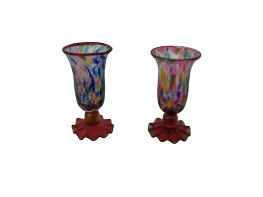 Pair of Multicolored Murano Goblets/Glasses with "Fazzoletto" Base
