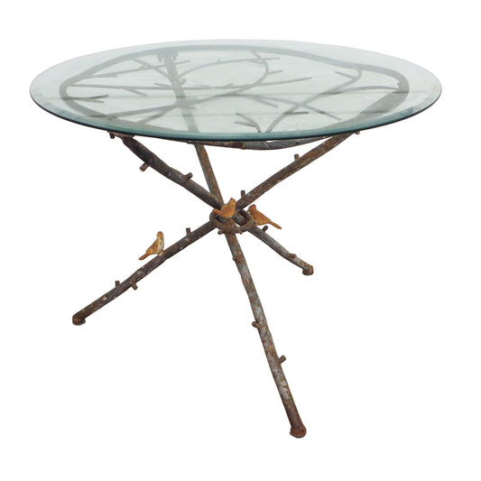 36″ Vintage Figurative Giacometti Style Metal Faux Bois and Glass Dining Table