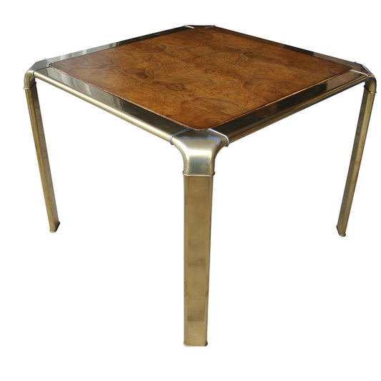 Vintage Mid Century Widdicomb 36″ Square Brass and Burl Wood Dining Table