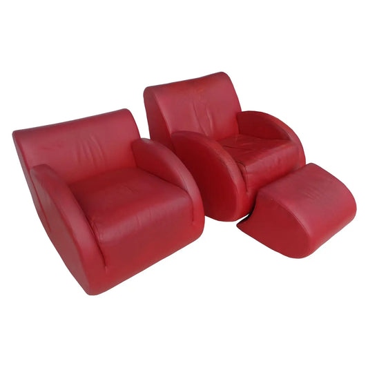 Pair of Vladimir Kagan "Rock Star" His and Her Lounge Chairs and Ottoman