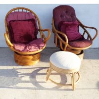 Ficks Reed Tufted Green Rattan Lounge Chairs