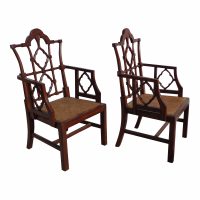 Pair of Mid Century Chinese Chippendale Arm Chairs