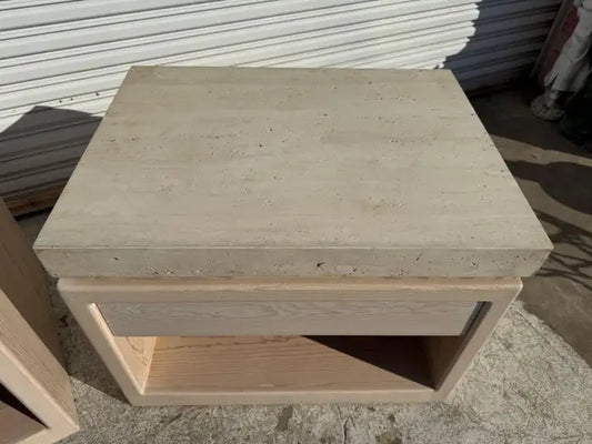 Italian Travertine Marble Top Nightstands