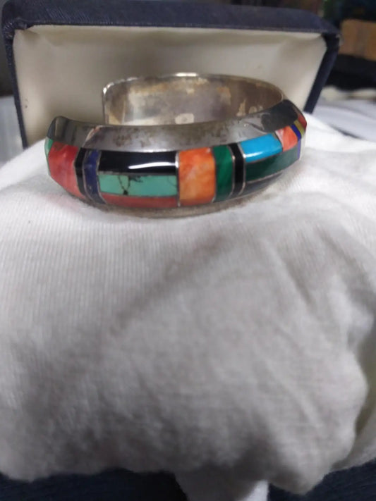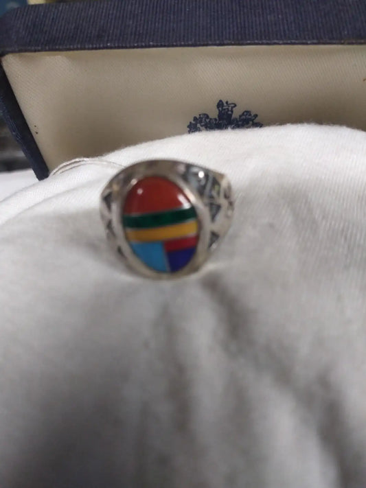 Richard Begay Sterling Silver Navajo Ring w/ Semi-precious stones