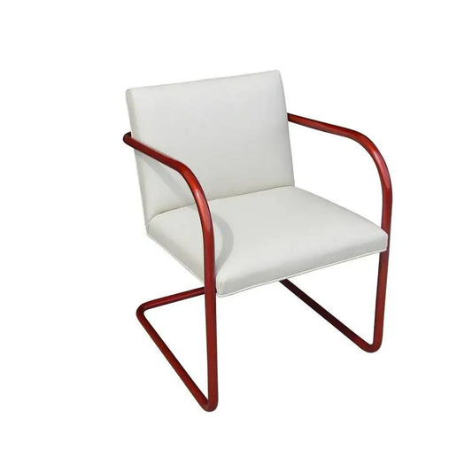 Vintage Ivory Leather Copper Color Frame Tubular Knoll Brno Chair by Mies van der Rohe