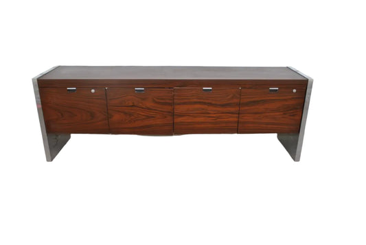 Vintage Mid Century Roger Sprunger for Dunbar 6.5ft Rosewood and Chrome Executive Credenza