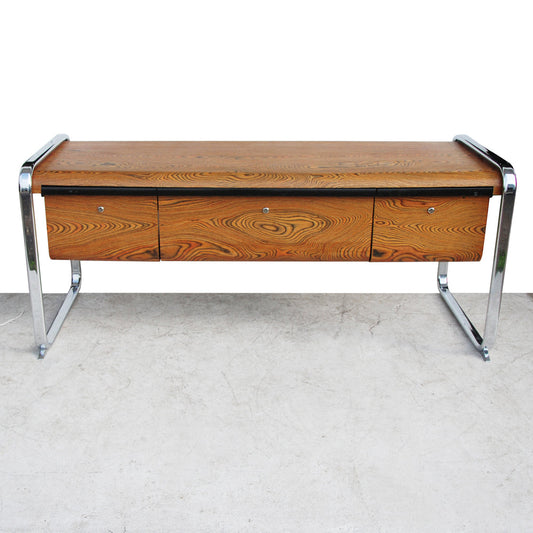 Refinished Mid Century Modern Alma Oak Chrome Credenza (MR2113)