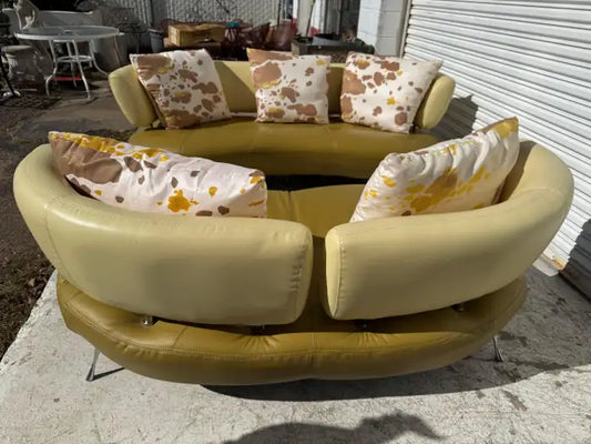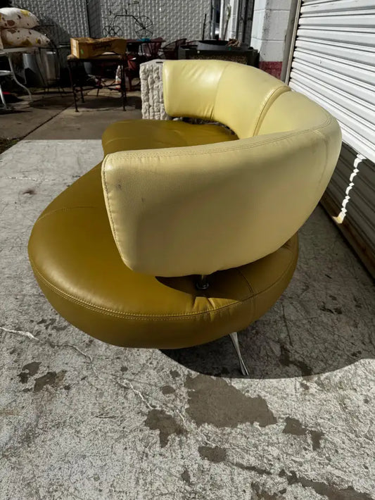68" Leolux Kikko Style Biomorphic Shaped Leather Sofa