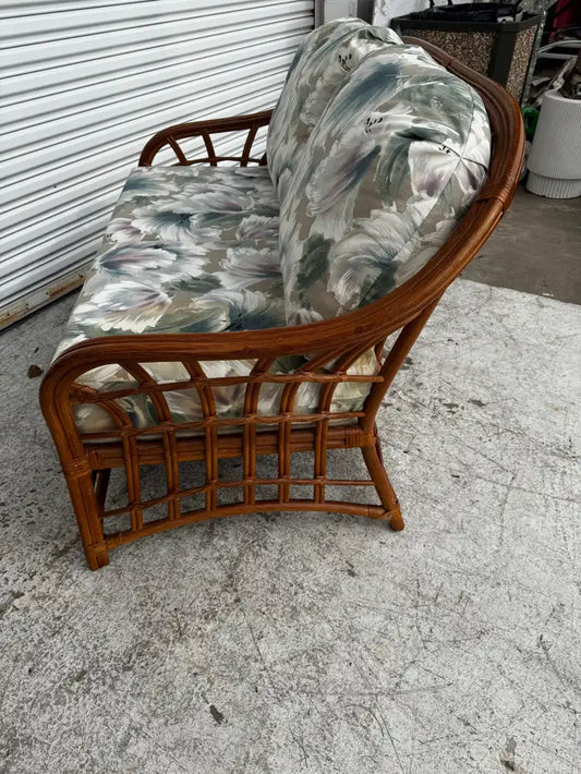 Boho Chic South Sea Rattan Collection Upholstered Loveseat