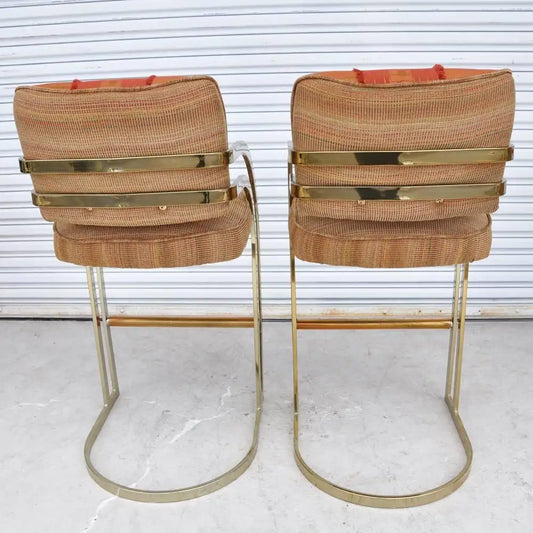 Vintage Mid Century Milo Baughman Flat Bar Gold Brass Cantilever Bar Stools