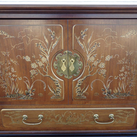Vintage Wooden TV Stand on Casters With Pull Up Door (MS10390)