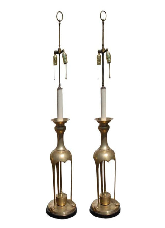 (2) Vintage Brass Table Lamps Style of James Mont (MR8717)
