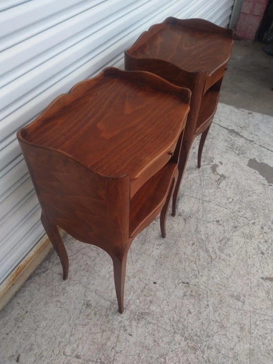 Pair of Vintage Single Drawer Walnut French Provincial Nightstands
