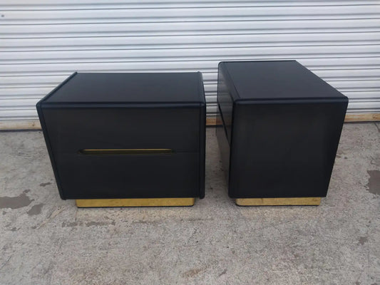 Pair of Lane Furniture Black Lacquer and Brass Nightstands