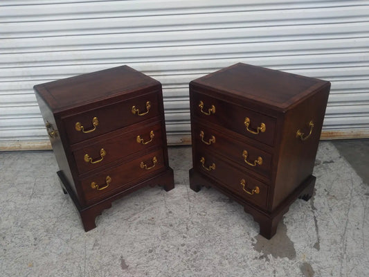 Pair of Mahogany Chippendale Style 3 Drawer Nightstands