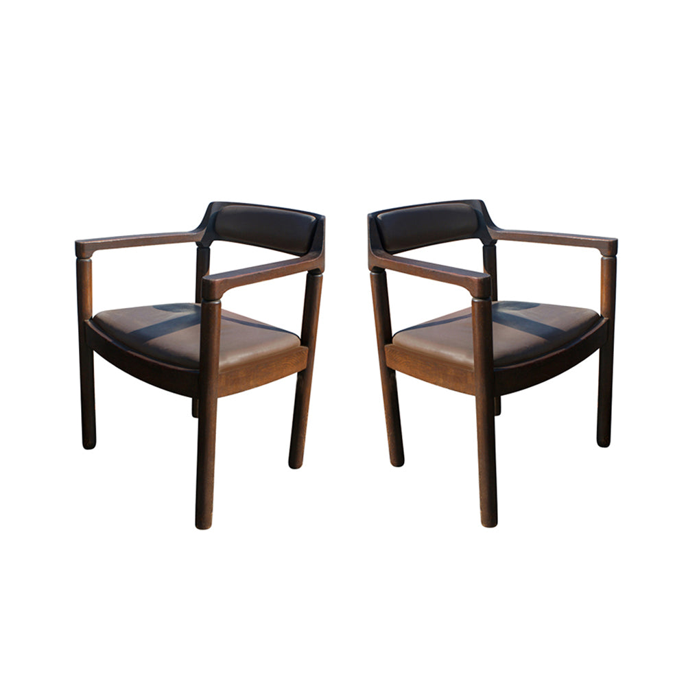 1962 Design This was the first carved wood chair Nicos Zographos did The chair back and arms are carved from 1 solid piece of wood Dark walnut frame Leather back and seat cushion