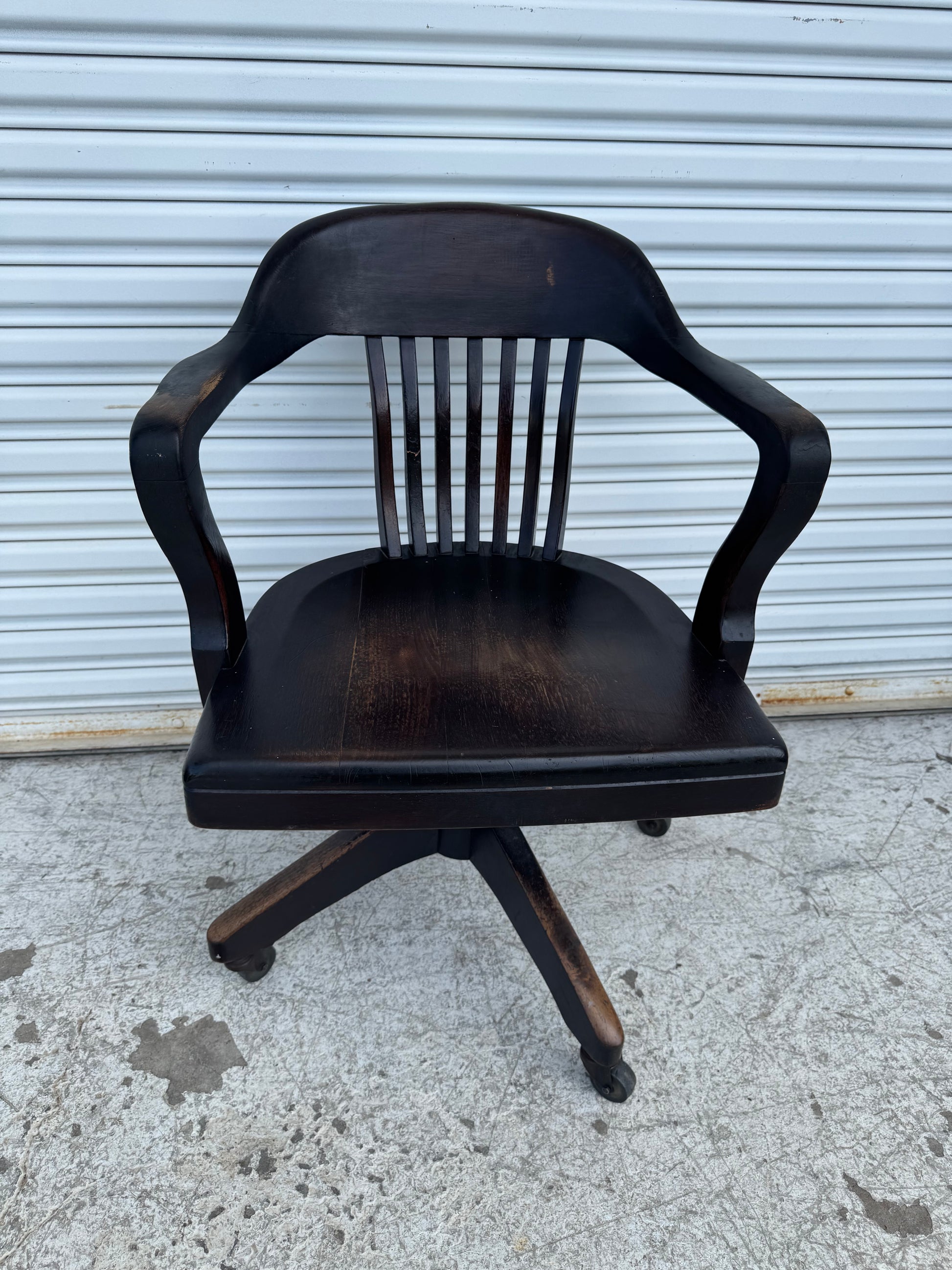 Early 19th Century Antique Oak Bankers Office Swivel Desk Chair