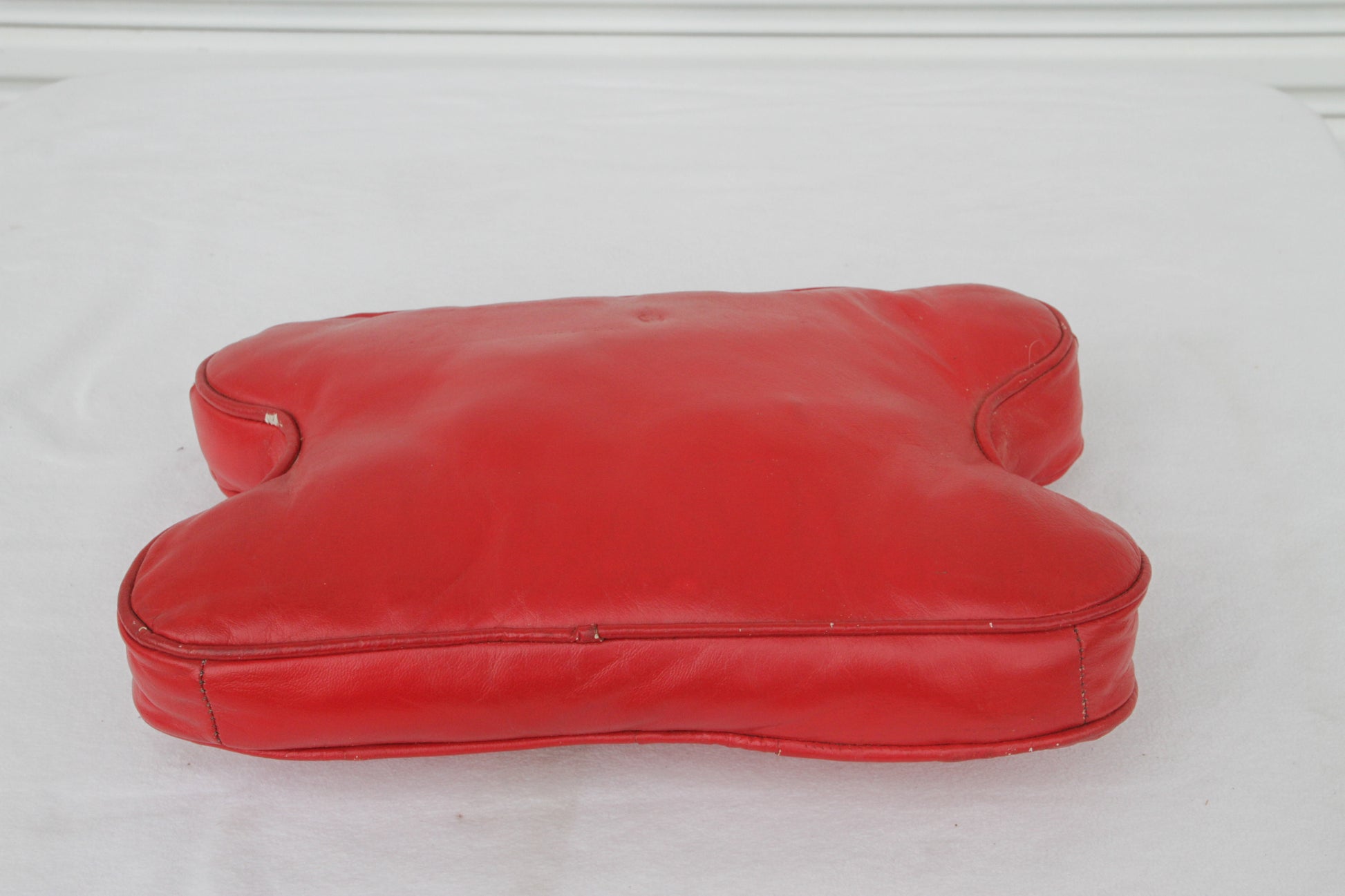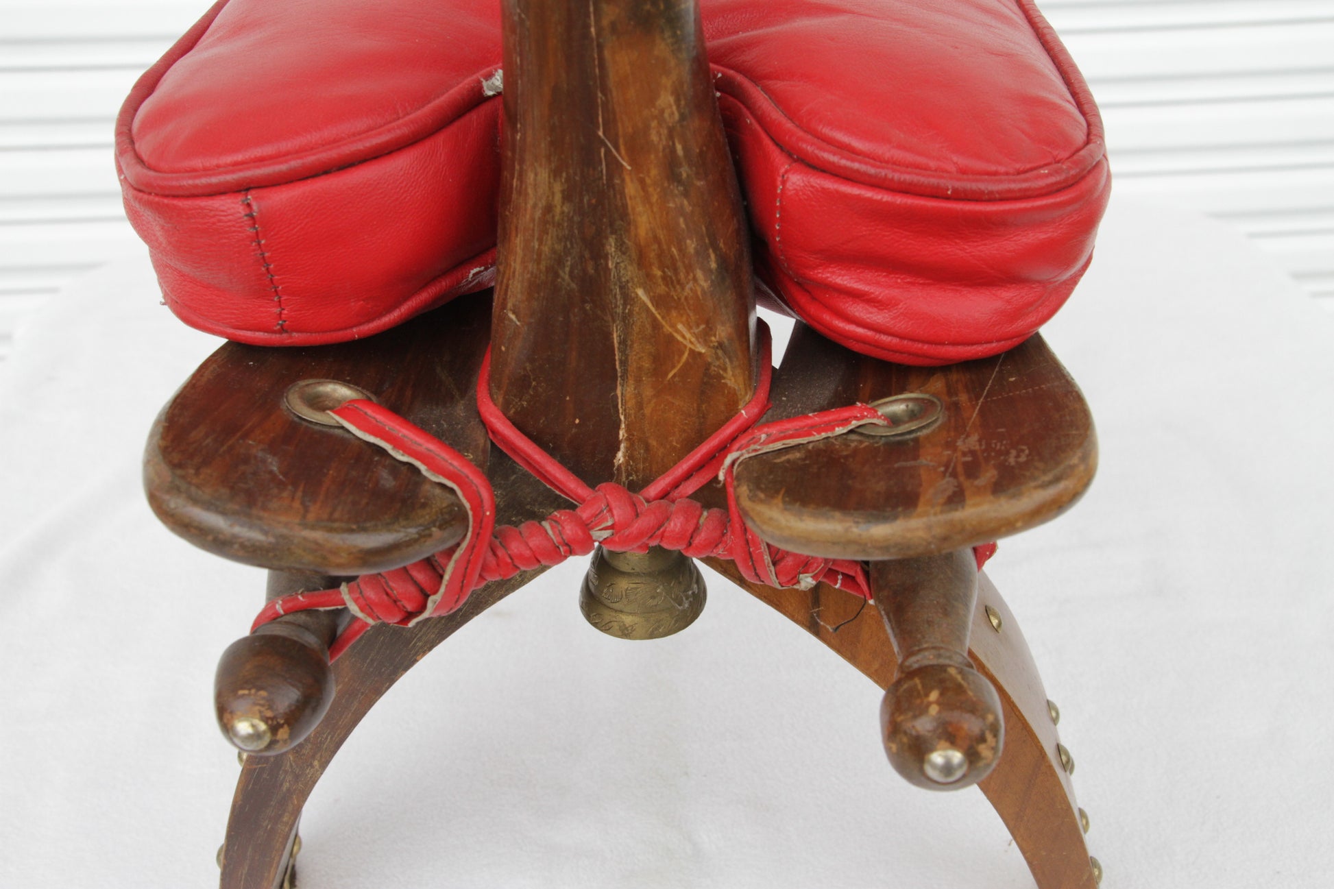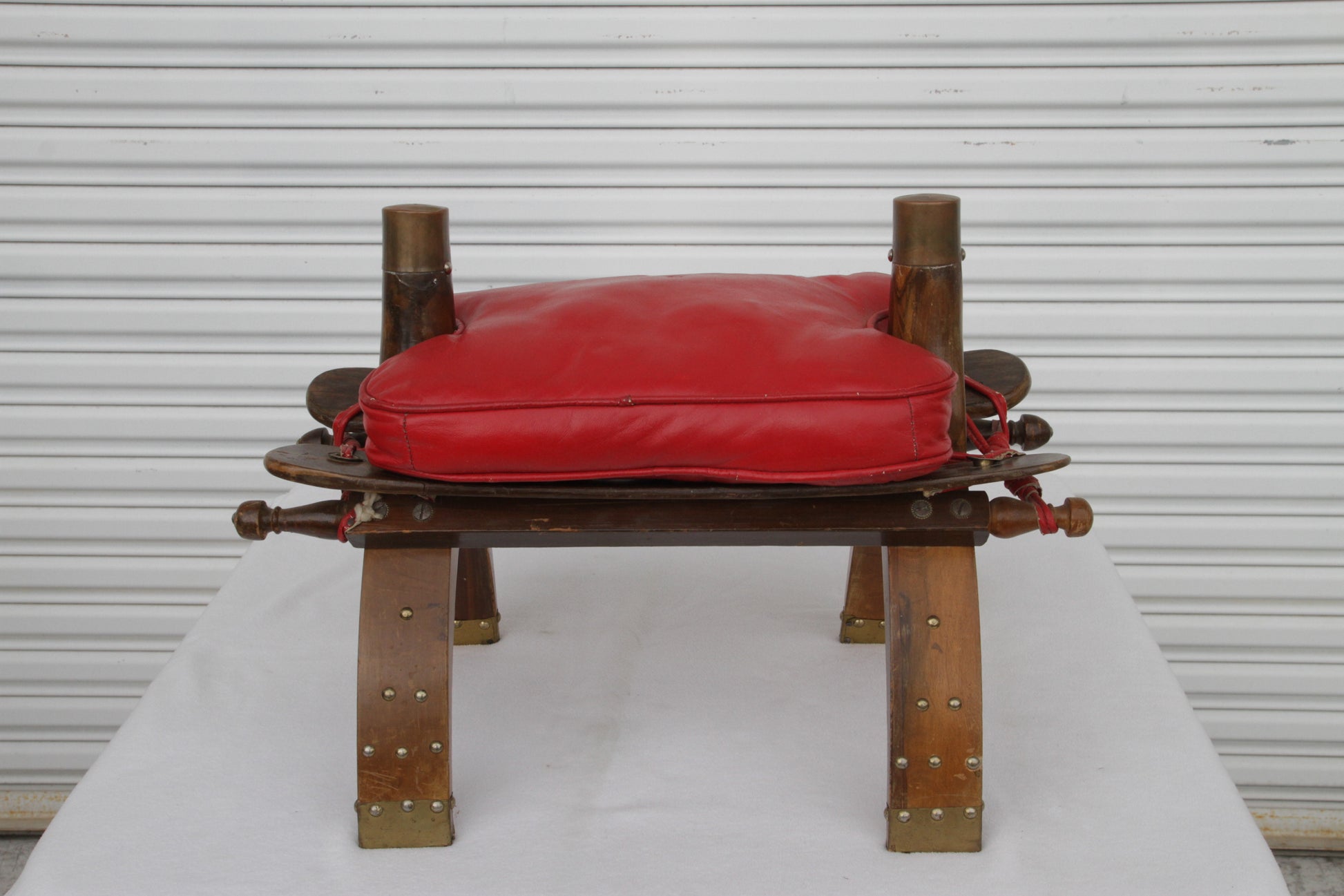1950s Moroccan camel stool with original vintage red leather cushion.
