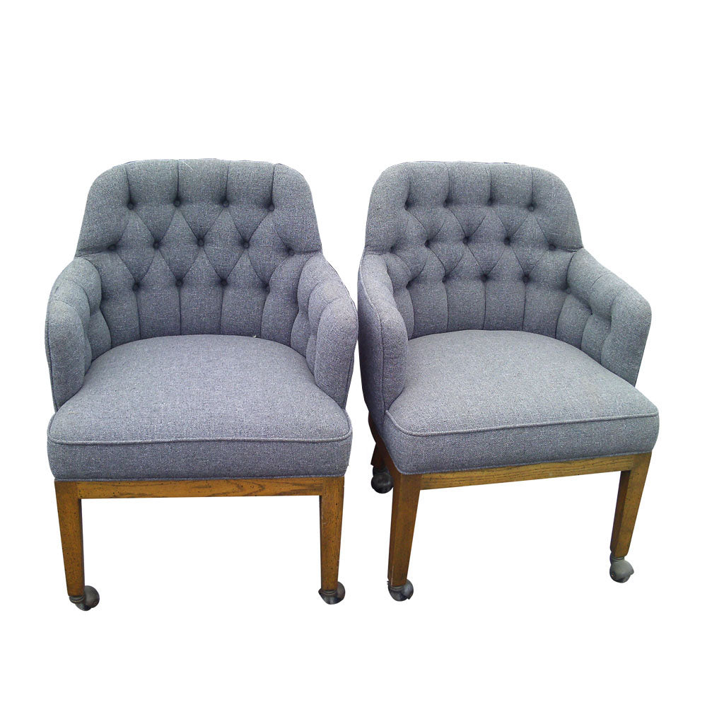 Novikoff Tufted Arm Chair on Casters Nicely detailed grey fabric with oak legs on metal casters Suitable for Home or Office 2 available, this ad is for 1 chair