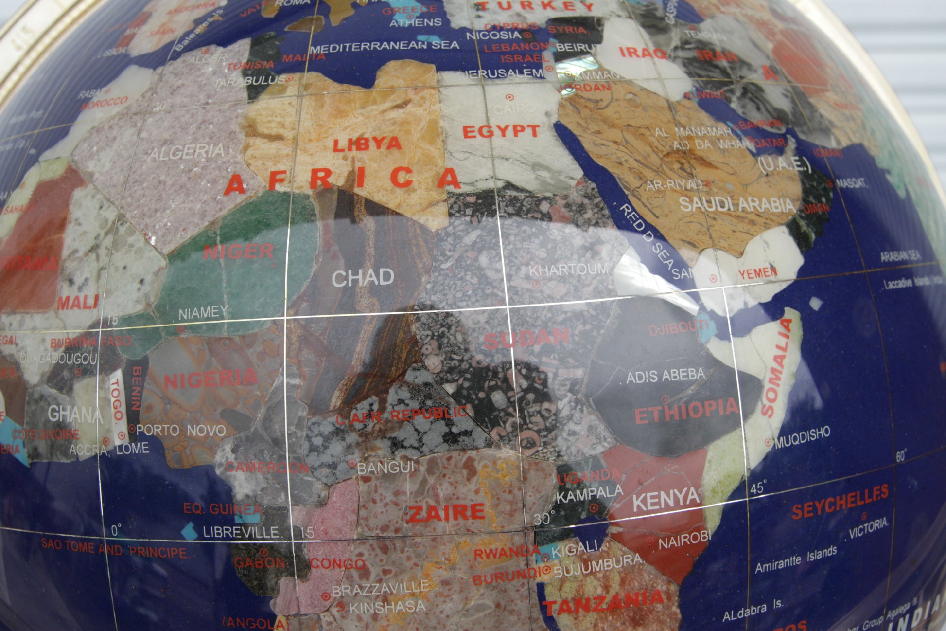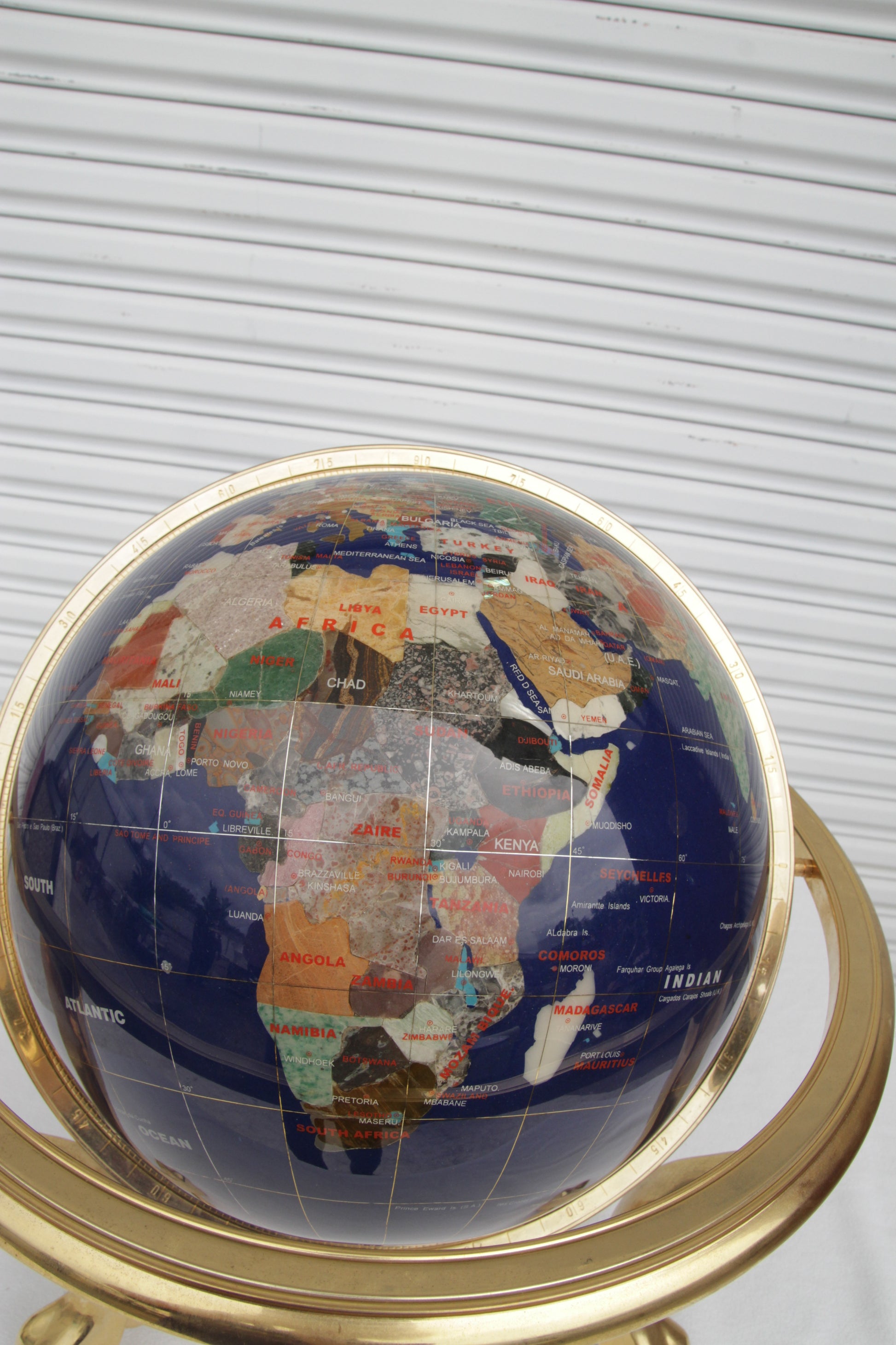 Pietra Dura and Brass Globe Attributed to Maitland Smith