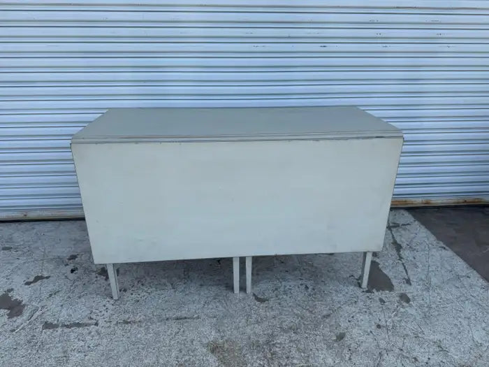 White Drop Leaf Table features a clean, minimalist design with functional versatility, ideal for compact or multi-purpose spaces. Crafted with slender tapered legs and a sturdy rectangular frame, the table includes two drop leaves that extend to provide additional surface area when needed. The painted white finish offers a fresh, vintage appeal, making it suitable for farmhouse, cottage, or shabby chic interiors. Its foldable sides make storage and mobility easy, perfect for kitchens, dining areas, or craft rooms with changing space needs.